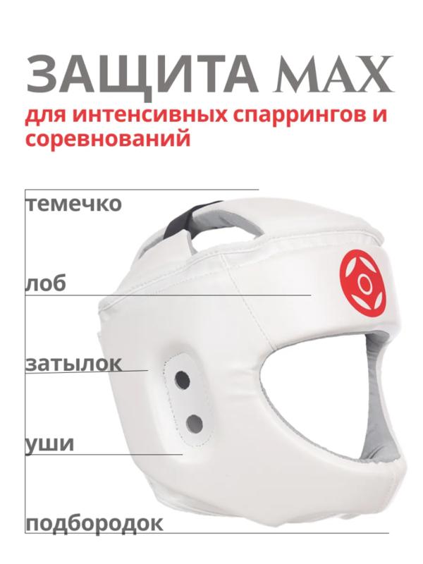 Открытый шлем с защитой подбородка для карате кекусинкай Isami. Шлем Isami — надёжная защита для спортсменов, практикующих карате Кёкусинкай, кудо, тхэквондо, ММА и другие единоборства. Модель сочетает безопасность, комфорт и эргономику, подходит для регулярных тренировок, спаррингов и аттестаций. Основные характеристики Конструкция Открытая форма обеспечивает максимальный обзор — критически важный элемент техники Кёкусинкай. Лёгкий корпус не сковывает движения, позволяя сосредоточиться на отработке приёмов. Материалы Внешний слой: прочный белый кожзам, устойчивый к истиранию и ударам. Внутренняя часть: мягкий гипоаллергенный текстиль с влагоотводящими свойствами. Амортизирующий налобник: снижает давление на кожу, предотвращает натирание при длительном использовании. Система фиксации Затылочная зона: регулируемые липучки для точной подгонки по размеру (подходит для детей и взрослых). Подбородок защищен перегородкой Дизайн На передней панели — красный логотип «Канку» (Kyokushin), символизирующий стиль Кёкусинкай. Лаконичный внешний вид соответствует традициям единоборств. Преимущества Универсальность. Подходит для разных возрастных групп и направлений боевых искусств. Комфорт. Вентилируемые материалы исключают перегрев, а анатомическая форма равномерно распределяет нагрузку. Безопасность. Конструкция защищает лоб, виски и верхнюю часть головы от ударов. Долговечность. Износостойкие материалы и усиленные крепления выдерживают интенсивные нагрузки. Простота использования. Быстрая регулировка позволяет самостоятельно надевать и снимать шлем. Область применения Тренировки по карате Кёкусинкай и смежным дисциплинам. Спарринги и отработка контактных техник. Аттестации и соревнования (при соответствии регламенту). Шлем Isami — это баланс традиций и современных технологий, обеспечивающий надёжную защиту и свободу движений. Идеален для тех, кто ценит качество, безопасность и аутентичный дизайн.