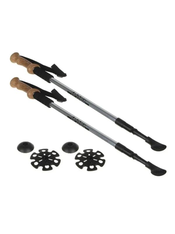 Палки для скандинавской ходьбы SILAPRO (телескопические, 3‑секционные) Основные характеристики: в комплекте: 2 шт.; регулировка длины: от 30 см до 135 см; материал: алюминиевый сплав; рукоятка: эргономичная, с противоскользящим покрытием; темляк: регулируемый; наконечник: твёрдый сплав + резиновый колпачок; фиксация: зажим с рычажком. Плюсы: подходят для любого роста (длина = рост × 0,68); лёгкие и прочные; удобная рукоятка и темляк; насадки для разных поверхностей (грунт, асфальт); компактны в сложенном виде. Для кого: новички и опытные ходоки; люди с ограничениями по здоровью; пожилые (улучшают координацию); туристы (дополнительная опора). Как использовать: Настройте длину и зафиксируйте зажим. Держите рукоятку свободно, темляк должен плотно обхватывать кисть. Двигайтесь попеременно: левая палка — правая нога, правая палка — левая нога. Уход: протирайте сухой тканью после использования; проверяйте затяжку механизмов; храните в сухом месте; заменяйте изношенный резиновый наконечник. Итог: надёжные, удобные палки для эффективных тренировок на свежем воздухе.