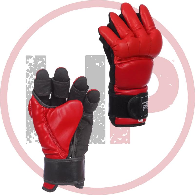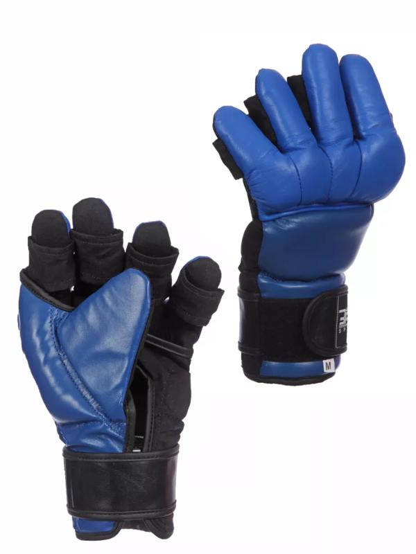 Перчатки‑краги для АРБ Brave: надёжная защита и свобода движений Перчатки‑краги Isami — профессиональная защитная экипировка для спортсменов, занимающихся армейским рукопашным боем (АРБ) и абсолютно реальным боем (АРБ). Модель сочетает надёжную защиту, эргономику и долговечность, позволяя полностью сосредоточиться на технике. Ключевые преимущества Максимальная защита при ударах. Конструкция надёжно оберегает кисти и предплечья, в том числе при контактах с металлической маской шлема. Эффект достигается за счёт комбинированного использования высокопрочного текстиля и эластичного латекса в зонах повышенного риска. Сохранение тактильной чувствительности. Первые фаланги пальцев со стороны ладони оставлены открытыми. Это: не ограничивает борцовскую технику и захваты; обеспечивает чёткое ощущение соперника; снижает риск травматизма при резких движениях. Универсальность исполнения. Модель представлена в вариантах с сочетанием натуральных и синтетических материалов, что позволяет подобрать оптимальный баланс: прочности и износостойкости; воздухопроницаемости и комфорта; веса и плотности защиты. Конструктивные особенности Эргономичный крой повторяет анатомию руки, исключая сковывание движений. Усиленные зоны в местах ударных нагрузок дополнительно прострочены и укреплены. Надёжная фиксация обеспечивается системой застёжек (липучки/резинки), предотвращающей смещение во время боя. Износостойкие материалы устойчивы к истиранию, сохраняют форму и легко очищаются. Для кого подходят Перчатки‑краги Brave подойдут: спортсменам, выступающим на соревнованиях по АРБ; тренерам и инструкторам, ценящим надёжность экипировки; любителям интенсивных тренировок, где важна защита без потери манёвренности. Итог: Brave — инструмент для достижения результатов. Продуманная конструкция, качественные материалы и внимание к деталям делают эти перчатки незаменимым элементом экипировки бойца