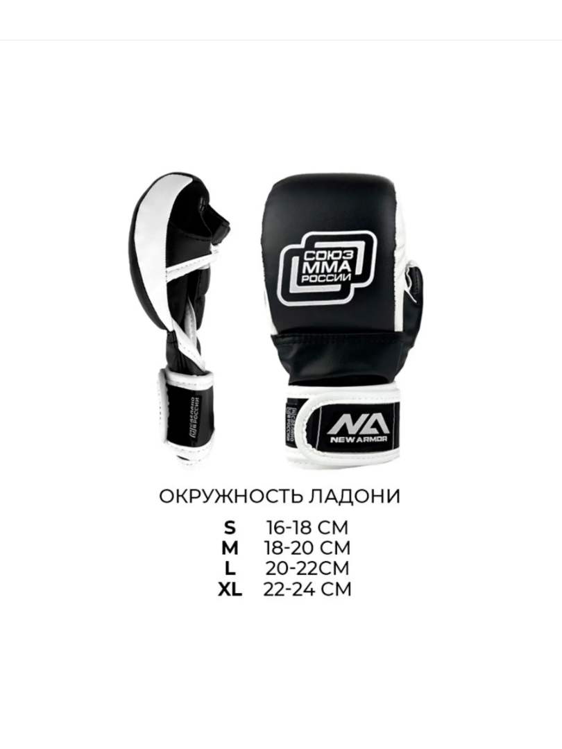 Перчатки для ММА NEW ARMOR СОЮЗ ММА PRO Перчатки NEW ARMOR СОЮЗ ММА PRO — официальная лицензированная экипировка Союза ММА России, предназначенная для интенсивных тренировок, спаррингов и любительских боев в смешанных единоборствах. Гибридная конструкция объединяет ударные и захватные возможности, обеспечивая универсальность для бойцов любого уровня. Модель одобрена федерацией, гарантируя безопасность и соответствие стандартам ММА. Основные характеристики: Материал: Высококачественная искусственная кожа, обеспечивающая долговечность и устойчивость к износу даже при ежедневных нагрузках. Наполнитель: Многослойный наполнитель из вспененного полиэтилена (EVA) высокой плотности, который эффективно поглощает удары, защищая кулаки, запястья и пальцы от травм. Дизайн: Компактная изогнутая форма, повторяющая анатомию кулака, что снижает утомляемость рук во время длительных сессий. Открытая ладонь с усиленными вставками для удобного хвата и захватов в партере. Защита запястья: Широкий манжет с двойной липучкой Velcro для надежной фиксации и предотвращения скручиваний. Большой палец: Дополнительная защита с гибкой конструкцией, не мешающей в борьбе и захватах. Вес и размер: Стандартный вес 6 унций (в зависимости от модели), доступны размеры от S до XL для идеальной посадки. Преимущества: Универсальность: Подходят как для ударной техники (удары руками), так и для борцовских элементов (захваты, броски). Комфорт: Вентилируемая внутренняя отделка из дышащей сетки предотвращает потоотделение и натирания. Одобрение федерации: Полностью соответствуют требованиям Союза ММА России, что делает их обязательным выбором для участников официальных турниров. Практичность: Легко надеваются и снимаются, просты в уходе — достаточно протирать влажной тканью после использования.