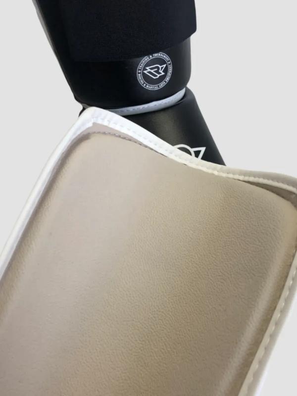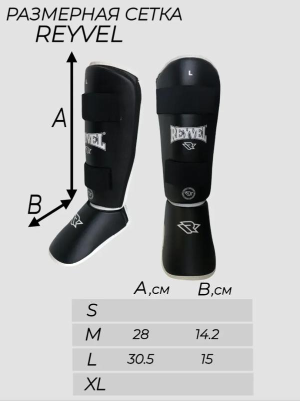 Фиксация на ноге осуществляется с помощью двух широких липучек, расположенных эргономично — это гарантирует плотное прилегание, исключает смещение и проворачивание защитных щитков во время движения. Резинки для стопы и пятки дополнительно фиксируют изделие, обеспечивая устойчивость при резких манёврах, прыжках и блокировании ударов.
